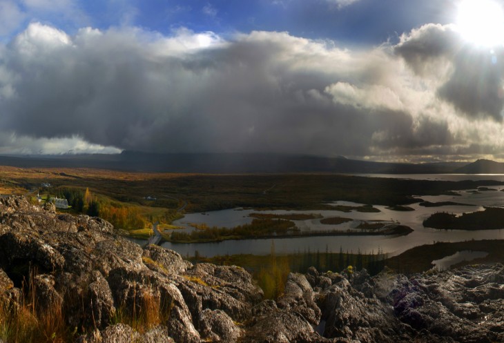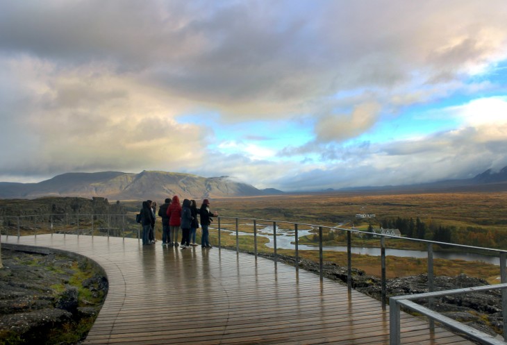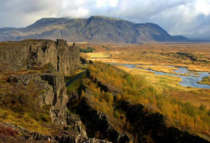 Исландия как остров это не что иное, как часть Срединного Атлантического хребта, его «высокогорное» плато, поднявшееся над уровнем океана. А парк Тингве́длир, это как раз то самое место, где можно посмотреть в одну сторону и увидеть Североамериканскую тектоническую плиту, а с другой стороны – Евроазиатскую.