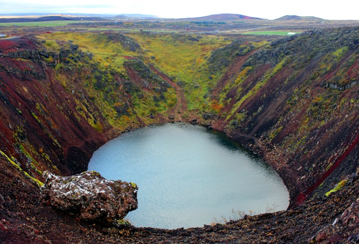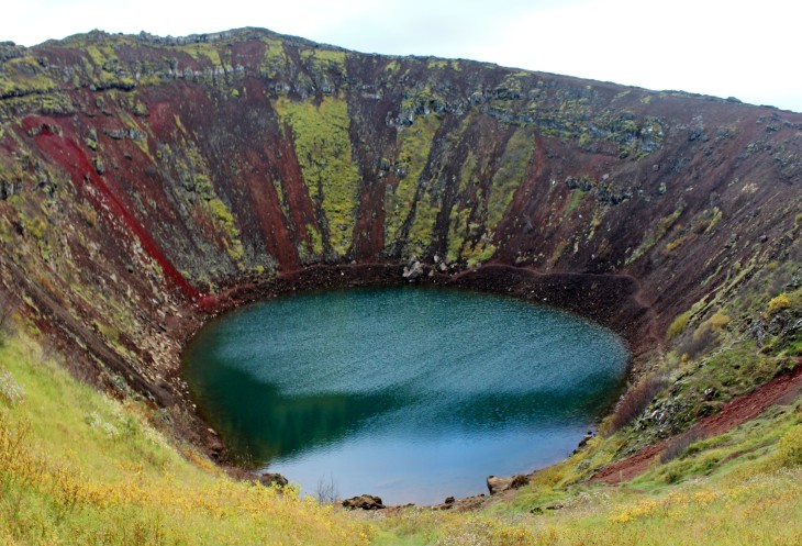 Когда-то отсюда выплюнулась магма! На дне озеро, говорят, около 14 метров глубиной. Обхожу кратер вокруг.