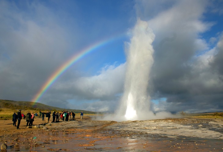Еще час провожу у Строккура сидя на лавочке, беседую неспешно с пожилой англичанкой. На пять минут появляется радуга и с замиранием сердца жду выброса, чтобы сфотографировать его на фона радуги.