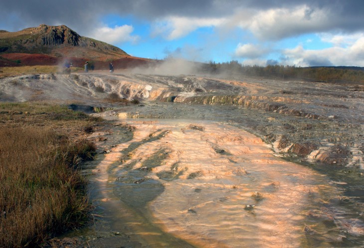 рядом с которыми булькают кипятком небольшие источники.