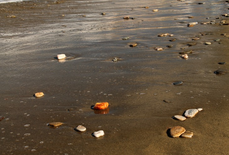 Волны причудливо перекатывали камушки на песке, каждая волна выкладывала из них новый узор...