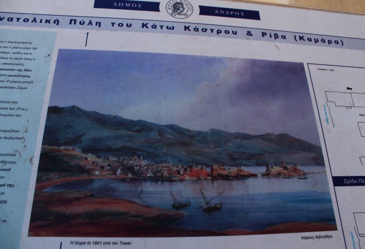 Я бы ни за что не догадалась, что это такое и для чего в старину использовалось, если бы в Старом городе не наткнулась на информационный стенд. Их в городе неколько - идея, между прочим, гениальна! Текст только на греческом, на английском - ни слова. Но! Практически на каждом стенде есть старинные фотографии или картины! Например, таким был Андрос в 19 веке...