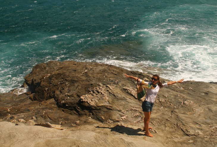 Очень хотелось сфотографировать остров снизу, но волны заливали камни вплоть до ступеней, и пройти до намеченного сверху "камушка" с которого можно было его сфотографировать, не представлялось возможным. Дочь улучила момент затишья между особо большими волнами - пробралась на него таки))