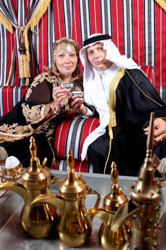 Муж сдержал обещание и мы после обеда выдвинулись в Абу Даби. С Олегом и Дашей вместе добрались до метро. Ребята ехали на фотосессию в национальных костюмах в Дубай молл. Пока ехали, ребята созвонились со своим индивидуальным гидом и та сказала, что мечеть шейха Заеда сегодня закрыта…вот так да…для меня это было ударом. Оставался только завтрашний день и все…домой. Мы изменили свои планы и решили вместе с ребятами ехать на фотосессию. Народу в Дубай молл было очень много (праздник все же!). Задержались в отделе марки Pierre Cardin. Насколько я поняла, это магазин вечных распродаж. Мужу прикупили обновки по низким ценам ( полуверы: 1800 руб и 2000 руб, мокасины -5800 руб), качество хорошее! Большее количество магазином с нашими мужчинами преодолеть было сложно, забежали только деткам игрушки прикупить и спустились на этаж LG, где справа от билетной кассы на Бурдж Халифа стоит красный тент с красивыми костюмами, кофрами, диванами, утварью. Вот сюда мы собственно и держали свой путь. Фотосессия длилась минут 10...не больше. Я все просила одеть мне на голову платок, чтобы убрать блондинистые волосы, мне пообещали...но...забыли.