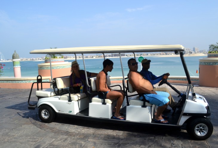После завтрака мы дружной компанией выдвинулись в аквапарк «Aquaventure» (отель «Атлантис»). На метро доехали до DUBAI INTERNEY CITY (красная ветка метро, ст№34), пересели на такси (12дирх) и попали на станцию монорельса. Билет на монорельс продается сразу туда-обратно, стоимость 25 дирх на человека + купон Entertainer (второй у нас ехал бесплатно). Ну монорельс, как монорельс…ничего особенного.