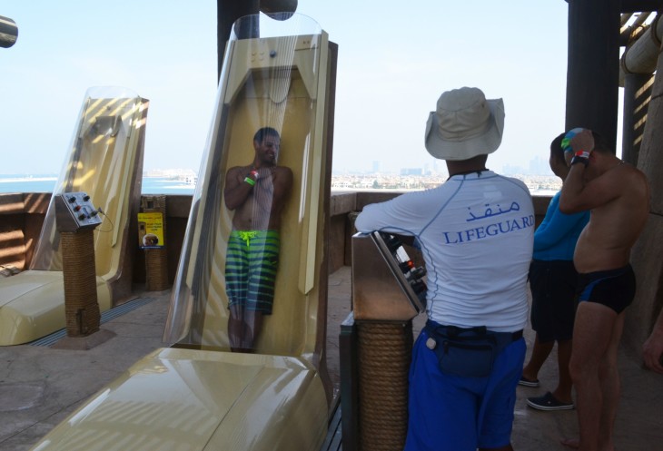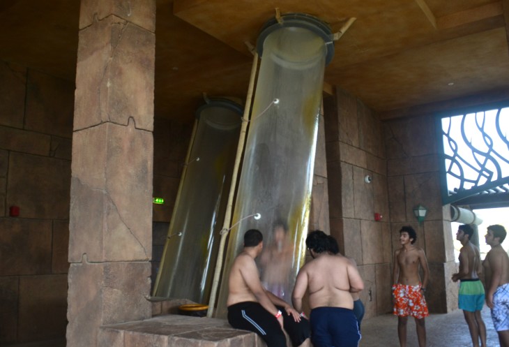 Ребята из нашей компании прокатились несколько раз на горке под названием The Leap of Faith (прыжок веры), где испытали практически вертикальное падение с высоты 27,5м и попадали в тоннель из прозрачного пластика, проходящий через лагуну с акулами. Сказали, что акул они так и не увидели, потому что, когда попадаешь в тоннель,, то в глаза попадает мощный поток воды…и пока соображаешь что и куда, тоннель уже пролетел. Горка конечно для смельчаков.