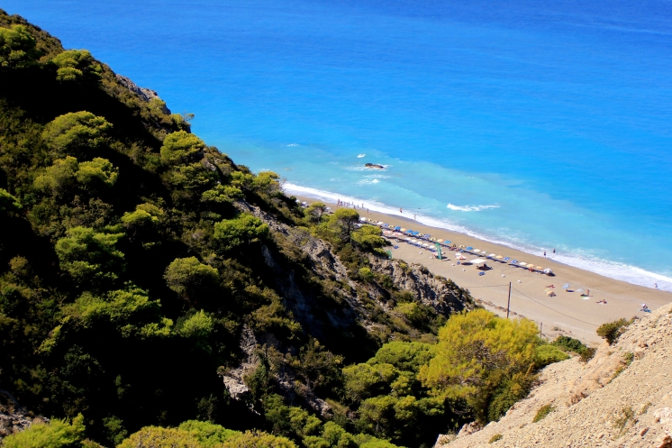Как и все пляжи на западном побережье Лефкады, он очарователен. Мелкий песочек, ярко-бирюзовое море, много зелени вокруг и очень сильные волны. Пляж оборудован лежаками, бесплатной стоянкой и кафе. Спускаться к нему буквально три ступеньки, очень удобно. Единственный минус – много морских водорослей, которые волны выбрасывают на берег. Мы не стали здесь останавливаться, поставили галочку и поехали чуть севернее Авали.
