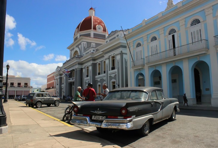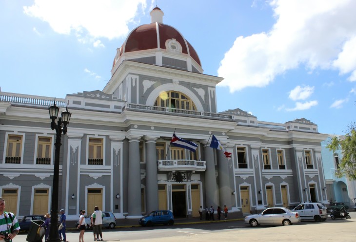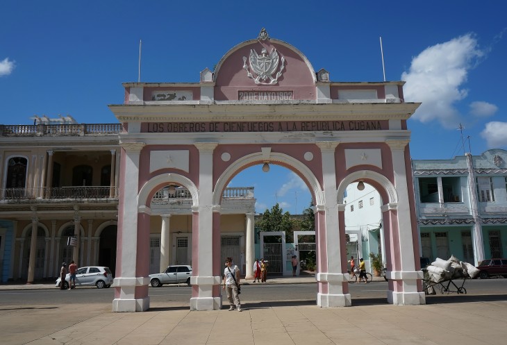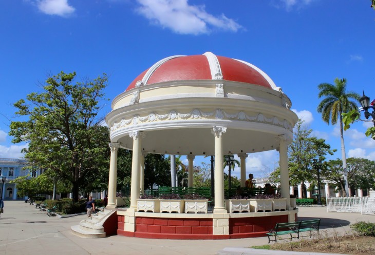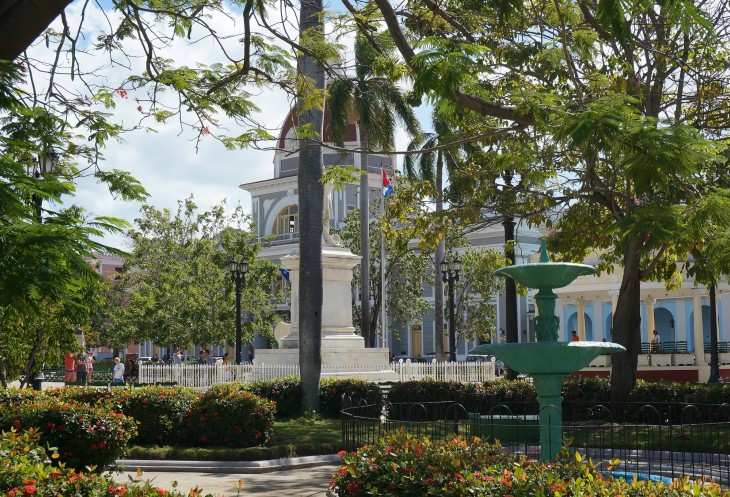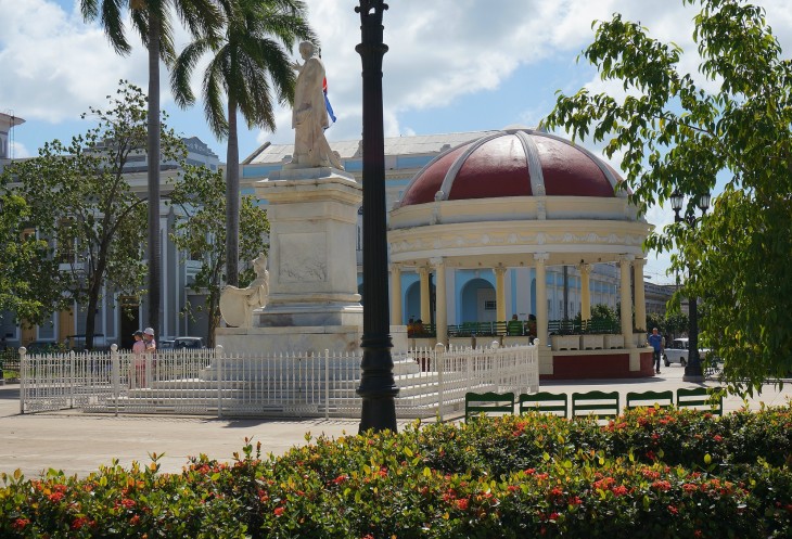 В Сьенфуэгосе, благодаря плотному графику мы посетили только площадь Хосе Марти, бывшая Оружейная площадь. Вообще в Сьенфуэгосе много достопримечательностей, однако на площади Хосе Марти они сосредоточены наиболее плотно, даром что эта площадь является для Сьенфуэгос нулевым километром, как Красная площадь в Москве.