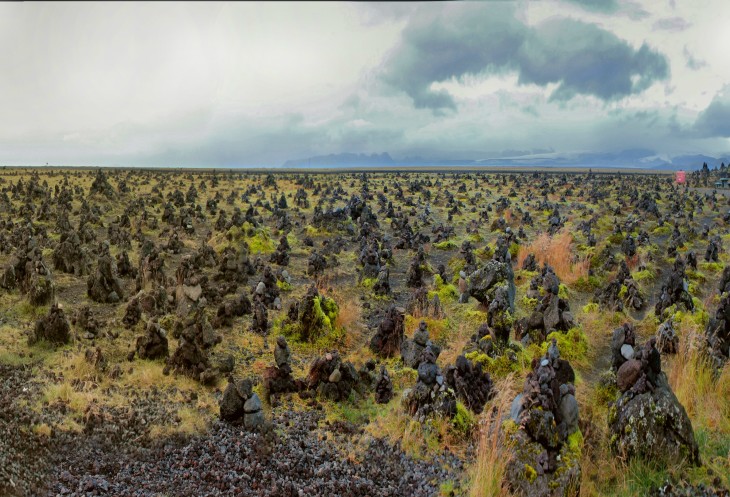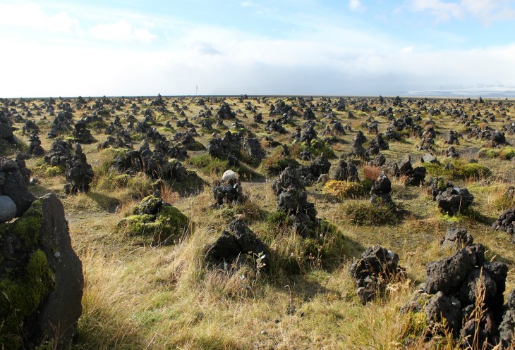 В 894 году произошло первое документально зафиксированное извержение вулкана Катла. Находившуюся в то время на этом самом месте ферму Laufskalor и всех ее обитателей тогда смело с лица земли. С тех пор, вот уже много веков, проезжающие здесь люди складывают каменные пирамидки в память о том трагическом событии. Зрелище печальное, и в то же время величественное.
