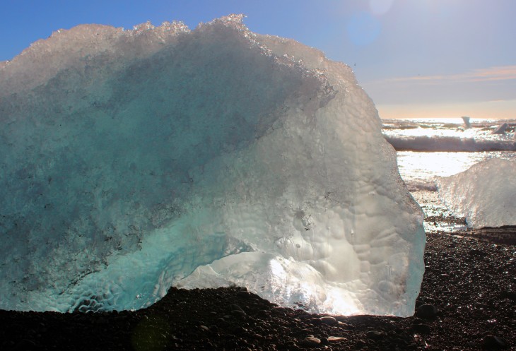 Когда-то ледник, название которого Вы уже точно должны были запомнить: Ватнаёкюдль, высунул один из своих многочисленных языков настолько далеко, что тот коснулся относительно теплых вод Атлантического океана. Теплая вода, видимо, пришлась леднику не очень по вкусу, и он начал интенсивно таять, постепенно отползая от побережья и образовав, таким образом, солидную лагуну площадью 18 км и глубиной до 200 метров.
