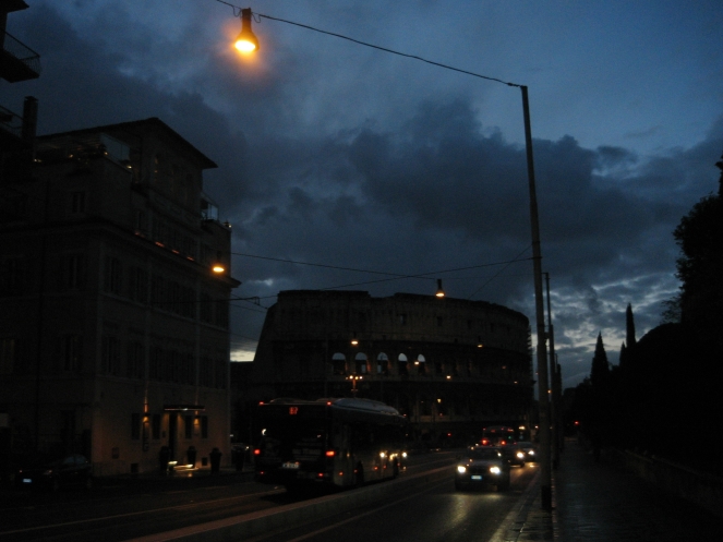 Неужели это он, тот самый знаменитый Колизей? Правда, я уже проезжала его днем на автобусе, но это было совсем не то... Может быть, потому что из окна туристического автобуса открываются стандартные туристические виды? А мне всегда хочется увидеть не "открыточный" и не парадный город и почувствовать в нем что-то особенное... Нужно сказать, что в Риме это удалось:)