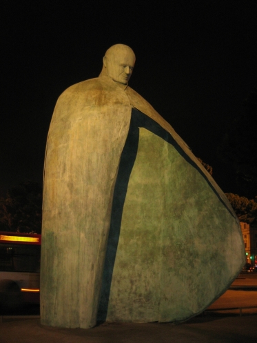 А недалеко от вокзала Термини есть оригинальный памятник покойному папе Иоанну Павлу II. Точнее говоря, очень странный...