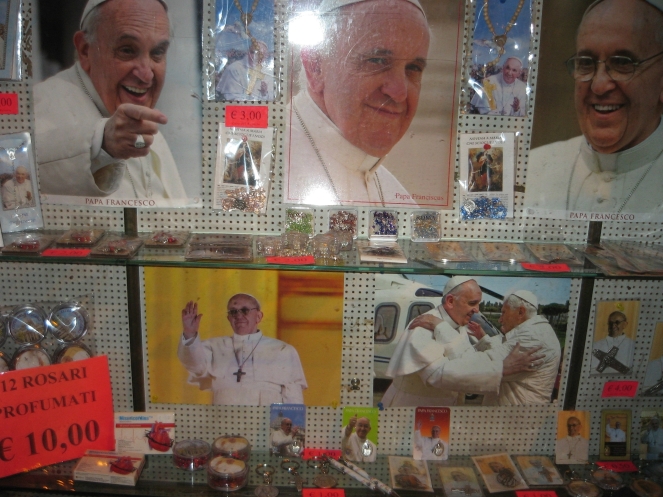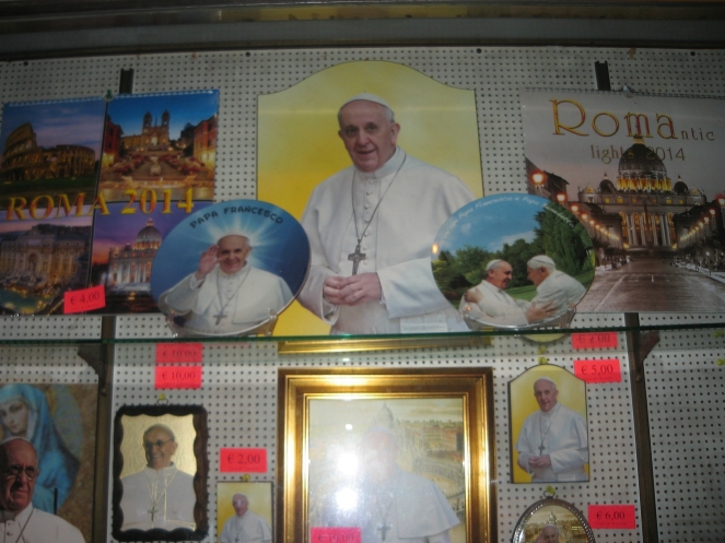 Одним из популярных римских сувениров являются изображения папы Римского: на календарях, картинах, тарелках, магнитах, наклейках...