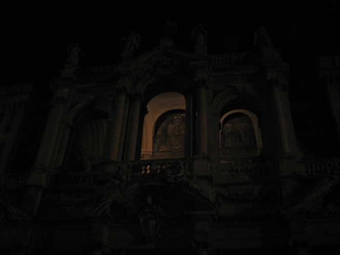 К сожалению, эйфория до добра не доводит. Нельзя в таком настроении покупать продукты в итальянских супермаркетах... А то можно купить что-нибудь неподходящее для больного желудка (например, майонез) и потом остаток дня потратить на самолечение:(( Только вечером, наевшись таблеток, я снова вышла на улицу и на этот раз побрела в сторону исторического центра: через площадь Республики дошла наконец до базилики Санта Мария Маджоре. Конечно, она была уже закрыта, так полюбоваться на нее в тот вечер удалось только снаружи.