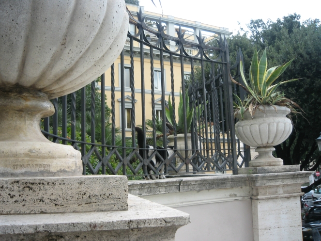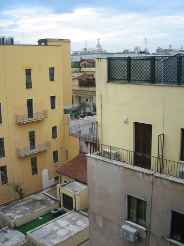 Район, где я решила поселиться, называется Кастро Преторио (как и одноименная станция метро), и, в отличие от привокзальных улиц, очень чистый и респектабельный. Практически на каждой улице какое-нибудь посольство. Гостиница была в одном из подъездов жилого дома на виа Палестро и занимала часть четвертого и пятого этажей. Думаю, это были две квартиры, переоборудованные под гостиницу. На ресепшен меня встретила пожилая сеньора - хозяйка. По-английски она почти не говорила, но понять друг друга нам удалось. Она отвела меня в забронированную комнату: небольшую, чистую и уютную, с санузлом, маленьким холодильником и даже балкончиком. Сеньора мне его сразу же с городостью продемонстрировала: там в ящиках и горшках росли цветы! Это на открытом балконе в конце января! Я долго охала и ахала, так что синьора была очень довольна произведенным эффектом:) Правда, вряд ли она представляла себе 20-градусный московский мороз, из которого я приехала...:)