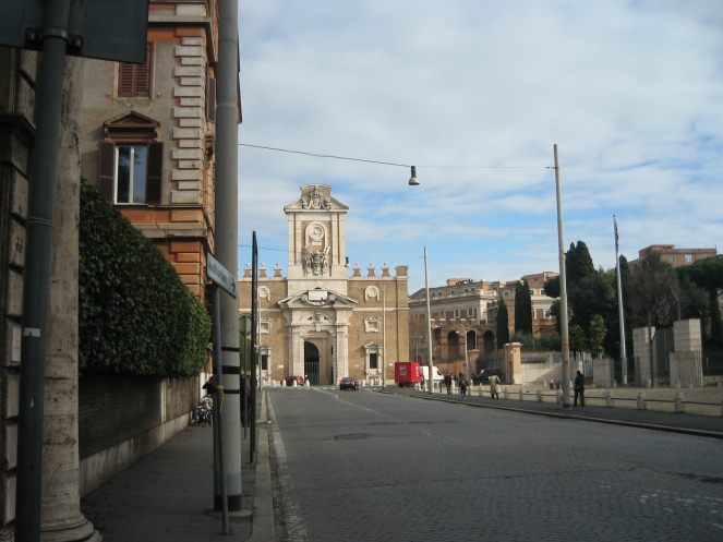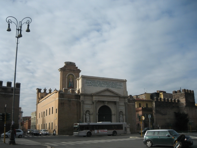 В середине XIX в. к воротам был пристроен пышный фронтон в стиле классицизма, в нишах установили статуи, а над аркой сделали надпись в память о чудесном спасении папы Пия IX от падения стены в монастыре св. Агнессы.