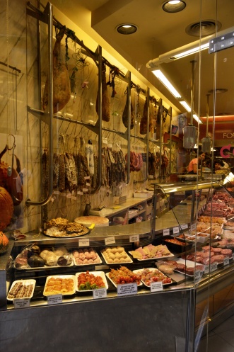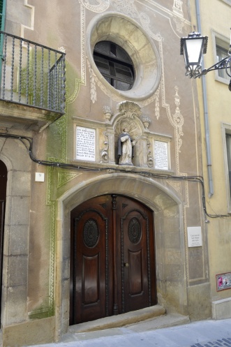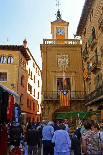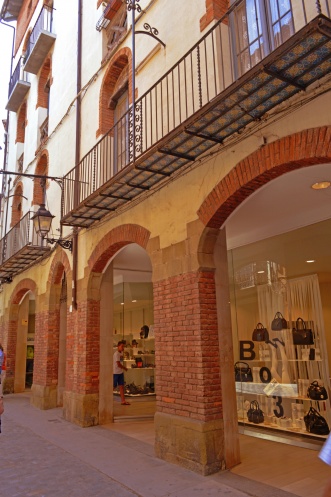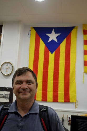 Увидев магазинчик,торгующий национальной символикой,в том числе и флагами,мы зашли в него.Мой муж коллекционирует фото,где он запечатлен с флагом той страны,которую мы посетили.Так вот в Каталонии флагов очень много,но они все закреплены высоко и фотографироваться с ними проблематично.А тут целая стена!Хозяин магазинчика с удовольствием разрешил нам сфотографироваться,а получив российскую монетку,в качестве сувенира,очень обрадовался.)