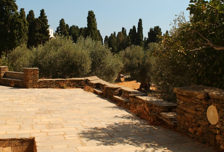 Эта церковь построена была византийцами в XII веке. В то время Мессария ещё оставалась главным городом острова, его административным и торговым центром (позже была основана Хора и столица была перенесена туда). Церковь очень хорошо сохранилась (ну или ее так хорошо сохранили). Рядом с церковью - красивый дворик, а за каменным заборчиком... пасутся козы)