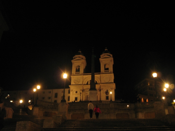 Следующие два часа я провела на виа дель Корсо, правда, купила только заказанную подругой сумку в магазине Carpisa (итальянская марка кожгалантереи). С сапогами мне в тот вечер не повезло… Часов в 9 магазины закрылись, а у меня открылось «второе дыхание». В просвете между домами я увидела знаменитую Испанскую лестницу и, конечно же, устремилась к ней! Многие туристы жалуются, что на Испанской лестнице очень много туристов и очень жарко... Как видно по этим фото, ни той ни другой проблемы в "низкий сезон" не наблюдается:)