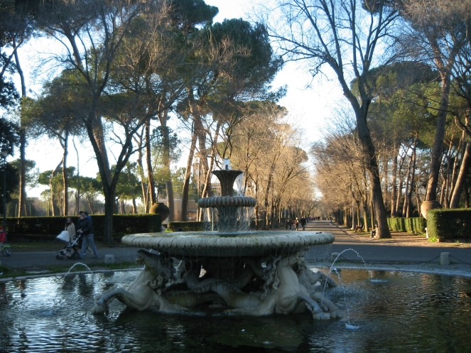 В парке было очень красиво, но человеческие силы, к сожалению, ограничены:( В результате я так и не дошла из парка до садов Пинчио, замечательной смотровой площадки, пьяццале Микеланджело и площади Пополо... Хотя идти было уже не так далеко. Возле небольшой площади с фонтаном Кавалли Марини (Морских лошадей) XVIII века меня настиг упадок сил, и я забралась в подошедший мини-автобус.