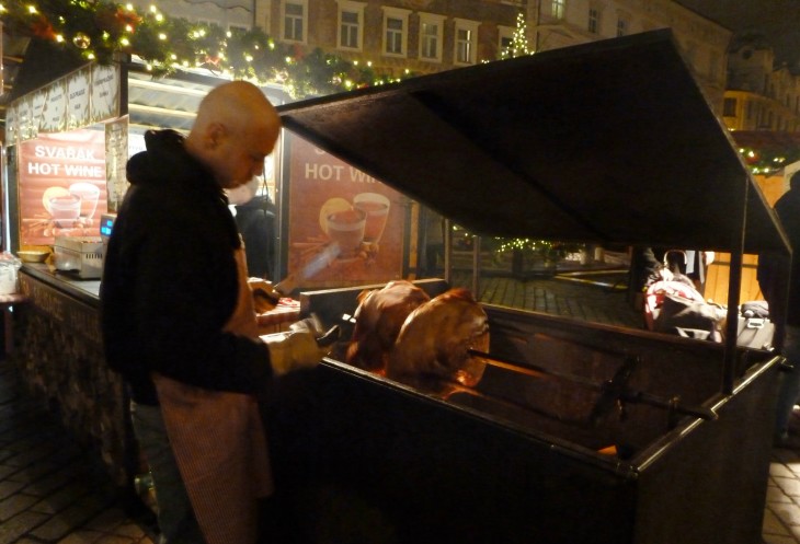 Знаменитое вепрево колено на вертеле с приятным дымком настоящих дров, а не угля из супермаркета и жидкости для розжига, вацлавские колбаски, печеные каштаны и сваржак - горячее вино со специями, апельсинчиком и лимончиком. Ох, как разыгрывается аппетит на свежем воздухе. Вообще-то я совсем не фанат уличной еды, а даже наоборот, но в Чехии все очень съедобно и безопасно, не сомневайтесь – на себе проверено.