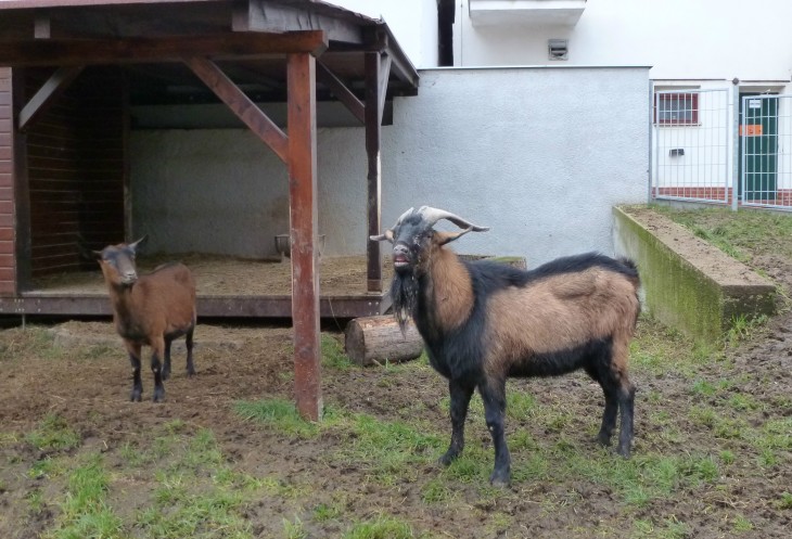 Козел, между прочим, настоящий – вполне себе здравствующий, и козочка у него ласковая,