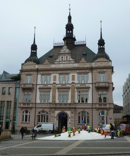 с огромным сугробом искусственного снега на центральной площади, в котором радостно возились местные «детсадовцы».