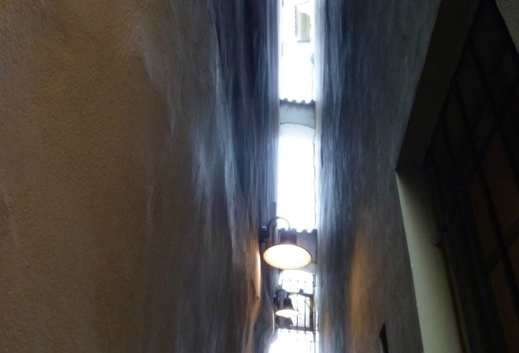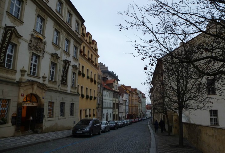 Самая узкая улица Праги. Эта улочка шириной около 70 см, затерявшаяся в лабиринтах острова Кампа, другого названия и не имеет.