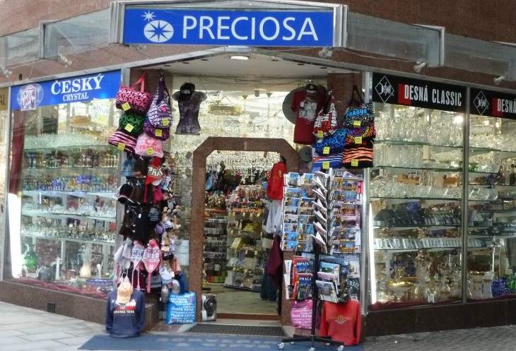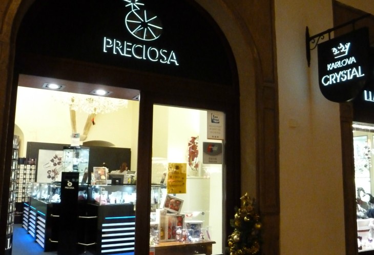 Сверкающие витрины магазинов чешского хрусталя с напоминающим о Rutraveller.ru именем Preciosa (фото специально для Лены).