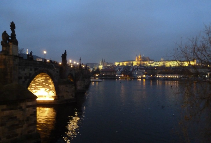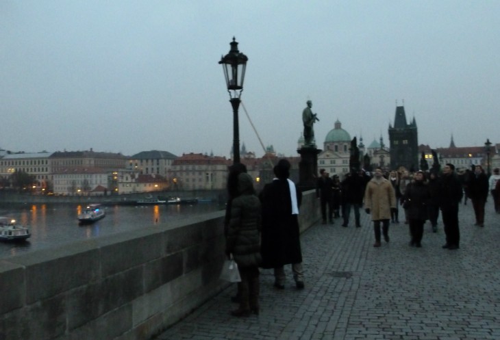 и фонарщик, по-старинке зажигающий газовые фонари на Карловом мосту.
