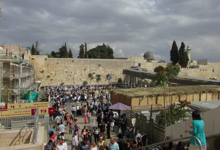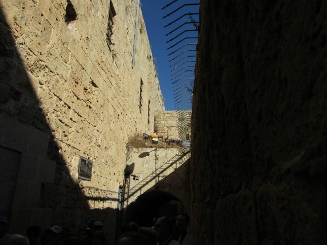 Сверху над стеной возвышается Купол Скалы и Мечеть Аль Аксы. Когда-то там стоял еврейский второй храм, а теперь там арабы, и посетителей они не любят. Накануне экскурсии одному любопытному итальянскому туристу там проломили камнем голову, поэтому мы решили туда не подниматься.