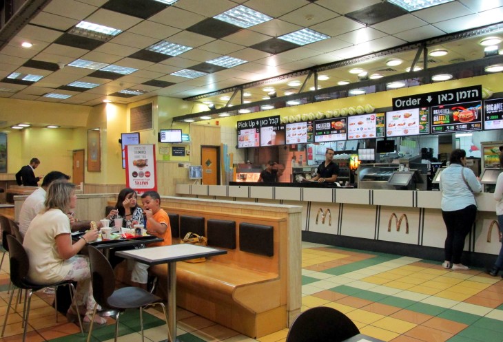 Большинство магазинов и кафе подчинено еврейским обычаям - т.е. соблюдение правил кашрута. Основные что я для себя отметил - нельзя свинину и нельзя употреблять мясо и молоко одновременно.