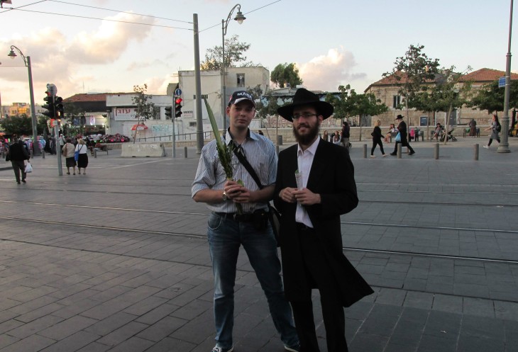 Рядом с рынком меня остановил ортодокс и языком жестов предложил присоединиться к еврейским традициям - попросил зачитать молитву на иврите и вручил мне четыре фрукта - символ религиозного праздника урожая Суккот (как раз проходил с 10 по 16 октября). Суть молитвы не знаю, смысл фруктов довольно поэтичен. Всего 4 фрукта - один имеет вкус и запах, другой имеет вкус но без запаха, третий с запахом и без вкуса, и четвертый - и без вкуса, и без запаха. Все четыре фрукта вместе символизируют еврейский народ (и не спрашивайте почему) Трижды воздав руки с фруктами к небу я кажется присоединился ко всему еврейскому народу, что, учитывая происхождение, довольно приятно :)