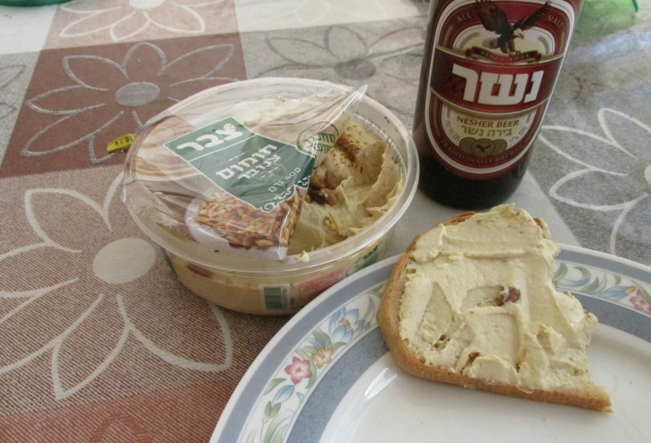 Один из самых популярных товаров и эдакая визитная карточка Израиля - это хумус - паста навроде мягкого масла, делается из бобовых. Вкус специфический, распробовал не сразу. Под пиво самое то)