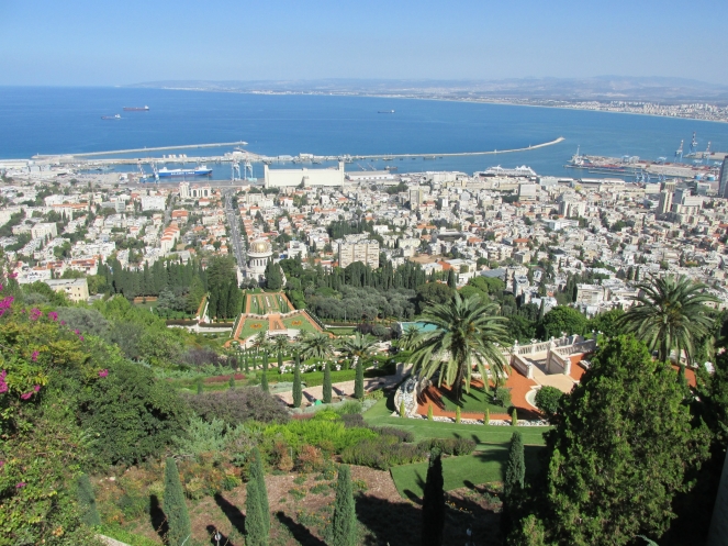 Зато в бахайских садах есть огромный плюс - с верхнего яруса открывается очень красивая панорама на Хайфу, порт и береговую линию. Вдалеке виднеется Древний Акко, дальше едет туда.