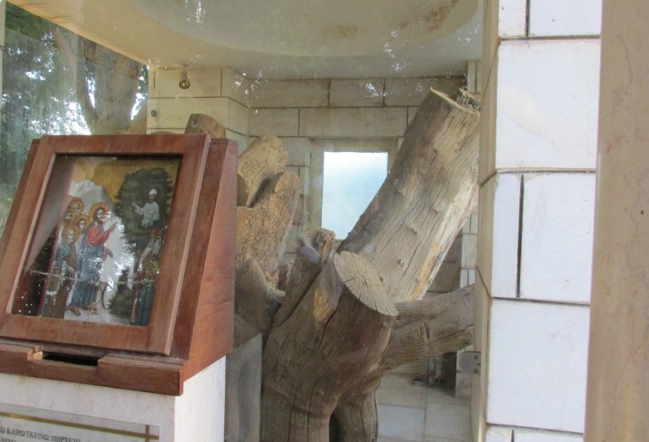 В Иерихоне, уже современном, посетили еще одну церковь, название которой увы не запомнил. Суть - по преданию, на этом месте стоял дом сборщика податей Закхея (на редкость неприятная персона), который очень хотел пообщаться с Иисусом, но был мал ростом и дабы его заметили (а толпа вокруг Иисуса была внушительная) взобрался на дерево. Иисус его заметил, снизошел до разговора и даже заночевал у него в доме. То что он не чурался общаться с грешниками типа Закхея записали в чудеса, на месте того дома поставили церковь, а пенек от того дерева заточили в стекло и водят туда туристов.