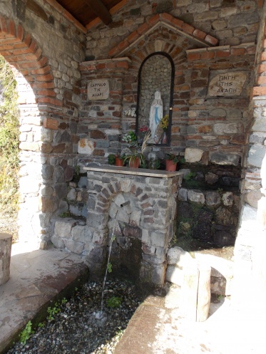 Естественно, что такой родник может быть посвящен не кому иному, как только Великой Матушке Богородице, Деве Марии, прародительнице всех христиан, о чем и гласит надпись на табличке. Как и полагается, на латыни и на греческом