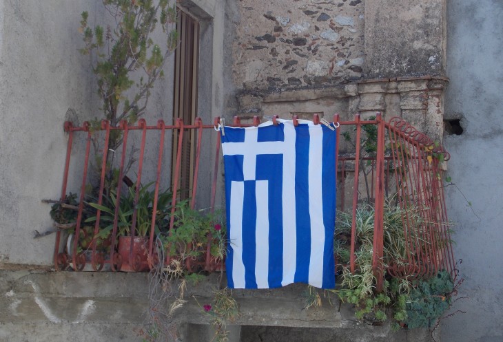 Нас встретили узкие улочки посада и первое подтверждение принадлежности оного к Греции.