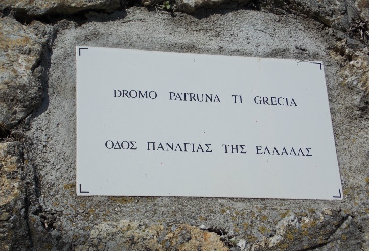 Что означает сия запись, мы так и не поняли, но догадались, что-то типа: «наша родина Греция». Надпись сделана на латинском и греческом.