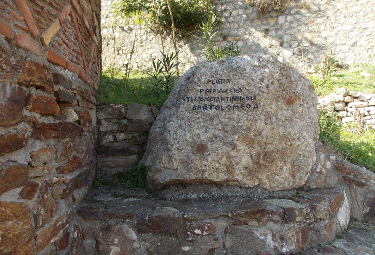 Надпись гласит, что театр посвящен патриарху Константинопольскому Варфоломею.