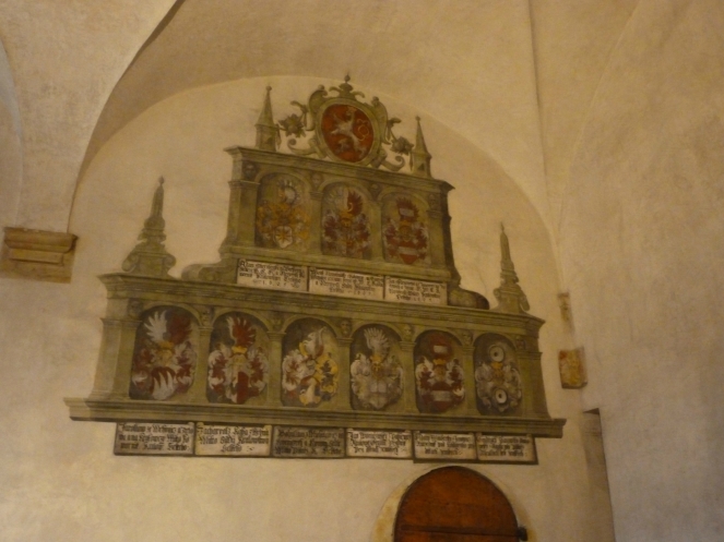 Фойе с поучительными надписями на стенах и массивным дверями служило для заседаний Чешской палаты, ведавшей финансами.