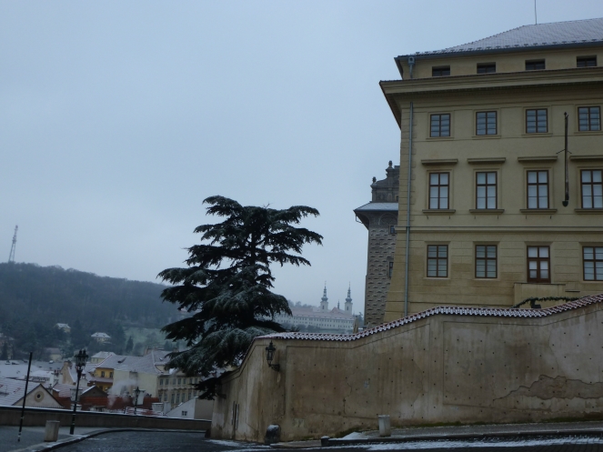 и как гордо поглядывают друг на друга убеленные снежными сединами градчанские дворцы,