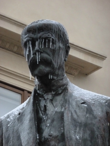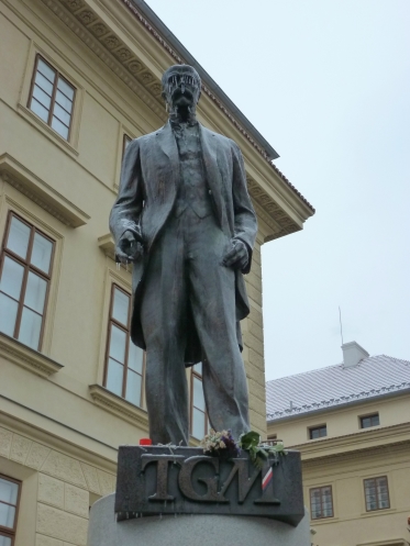 а вот первому чешскому президенту Томашу Масарику явно не весело...