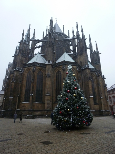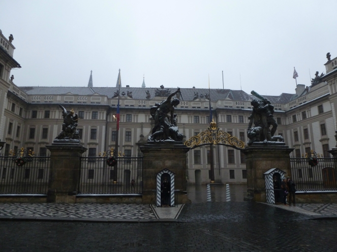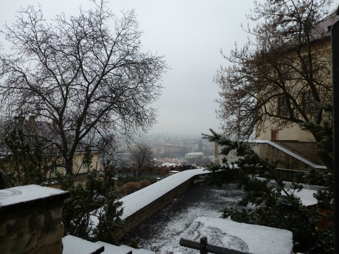 Трамваи еще и не думали ходить. Самый короткий путь до метро через Пражский град. На удивление скоренько до него добежали и пересекли тоже достаточно быстро. Выйдя через Восточные ворота, мы резко тормознули – ведущая вниз Старая замковая лестница блестела как зеркало. Голый лед! Как спускаться? Оглянулись на ворота Пражского града, на Черную башню, сочувственно смотревшую нам вслед.