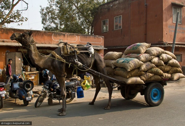 28. Из живности в городе не только свиньи, но и верблюды. В Индии их используют наравне с тракторами - могут везти много и далеко.