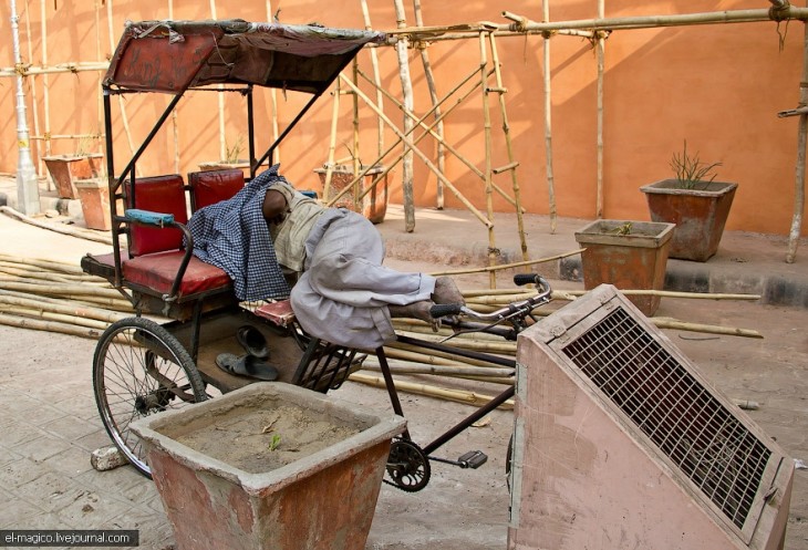 7. Те у кого колёса уже подкачаны, могут и поспать. Особенно, если ты король. (Смотри подпись на крыше рикши :) )