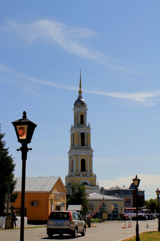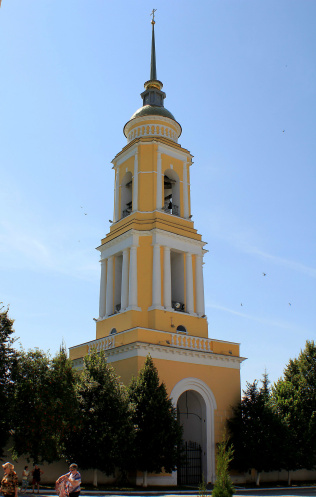На территории Кремля практически отовсюду виден высокий шпиль колокольни – это церковь Иоанна Богослова. Расположен храм прямо в центре торговых рядов – это было типичным для всех купеческих городов на Руси.