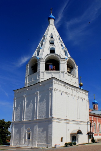 Сорокаметровая красавица возвышается поблизости от Успенского собора - Успенская шатровая звонница. Очень массивная, белокаменная, она сильно отличается от других построек на Соборной площади.