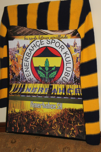 Я обратила внимание на постер и шарф какой-то, явно турецкой, футбольной команды.