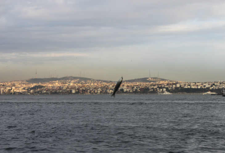 Покушали мы балык экмек, запивая бесподобным айраном, под галатским мостом. И было забавно наблюдать, когда, время от времени, прямо перед трапезничающими, из воды вытягивалась одна из очередных рыбёшек. Это ловили рыбу на втором ярусе моста.